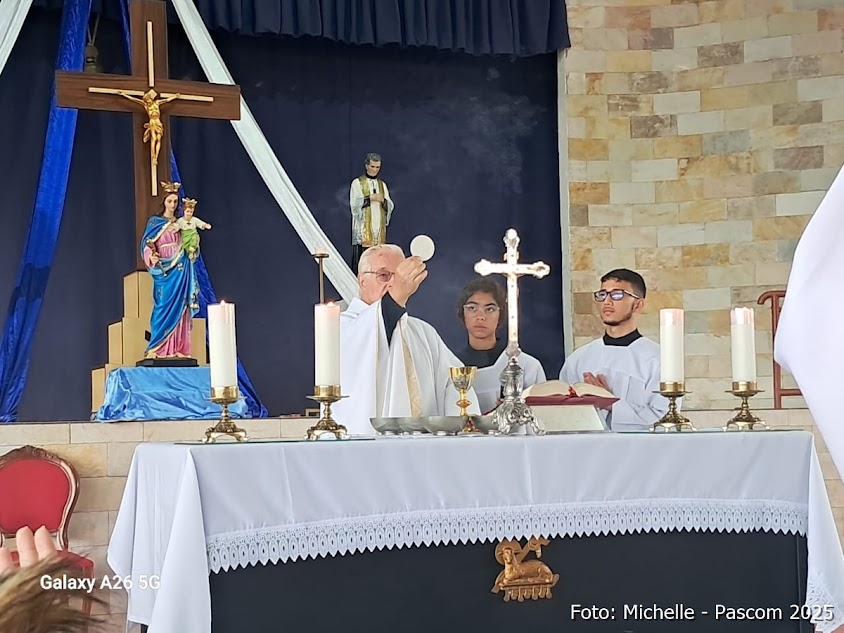Na manhã de domingo, 17/08/25, o Pe. Luiz Gonzaga Picolli, sdb, presidiu a Celebração da Santa Missa da Solenidade da Assunção de Maria, 19º Domingo do Tempo Comum, Mês Vocacional, Ano Litúrgico C, na Quadra do Oratório São Luiz.